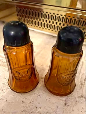 Amber glass salt & pepper shakers
