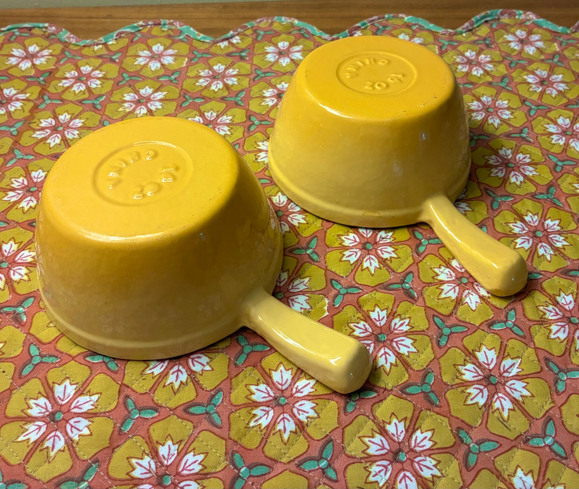 Expertly crafted cast-iron cocettes with a stunning yellow finish, ideal for serving French onion soup. The heavy-duty lug bowls measure 7 1/4" x 2 1/2" and provide even heat distribution for a perfect cook. Elevate your dining experience with these beautiful and functional cocettes.