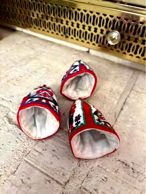 These darling embroidered cozy egg cups add a charming touch to any breakfast table. With a lovely design featuring a woman, man, and flowers, these red and blue cozies will keep your poached eggs warm and a vintage european charm to your table. Sold in a set of 3.
