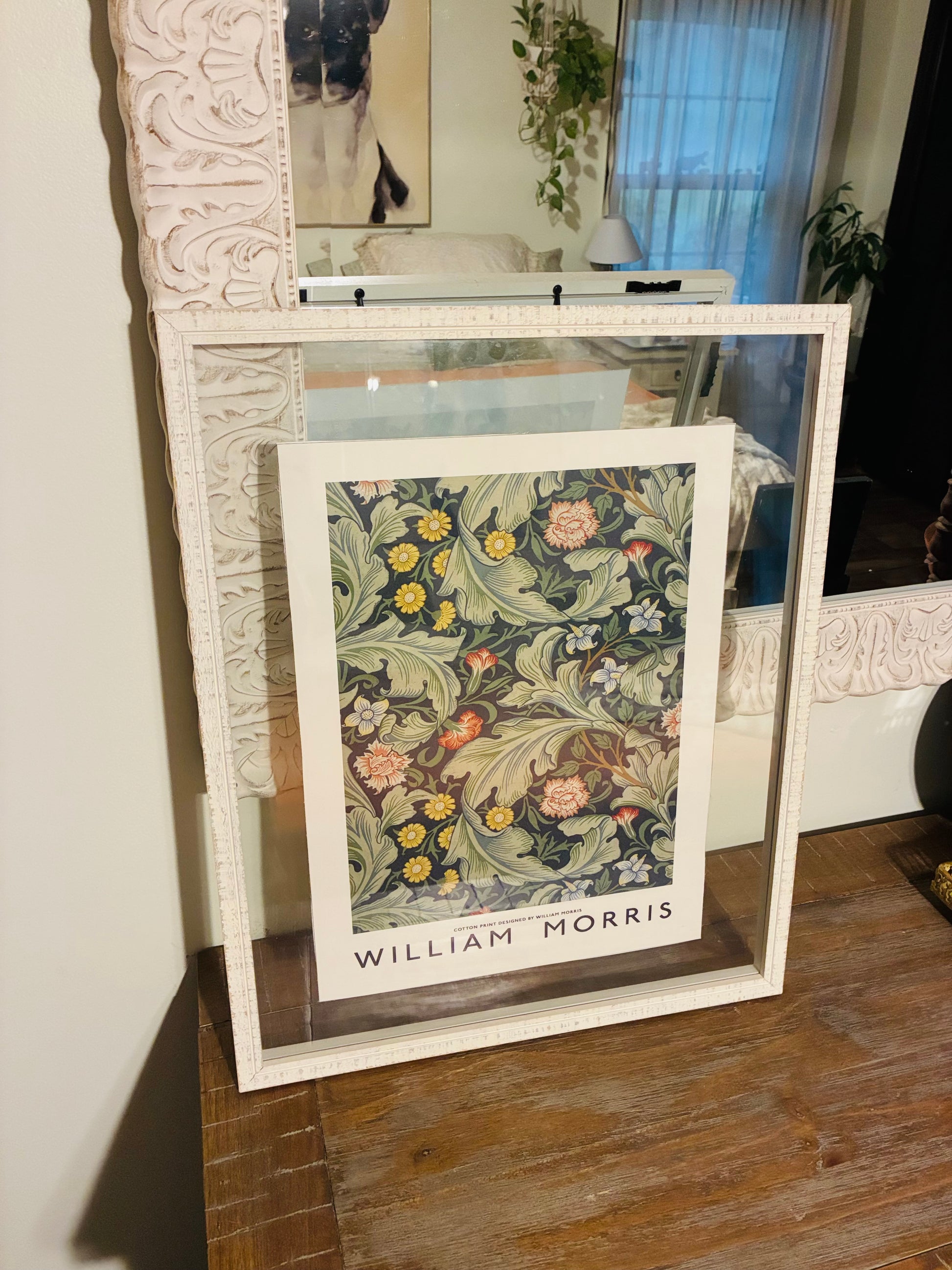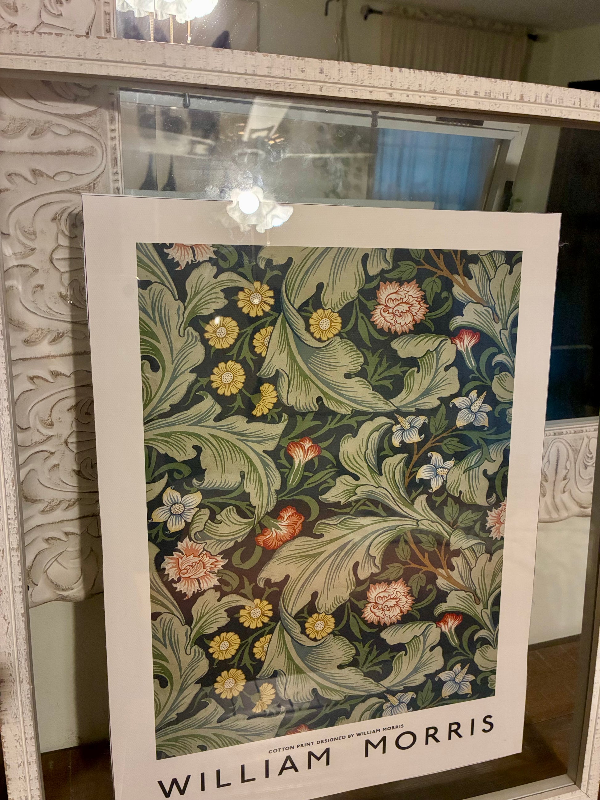 Iconic William Morris beautiful floral canvas prints in 2 sided glass frame 21"x17".