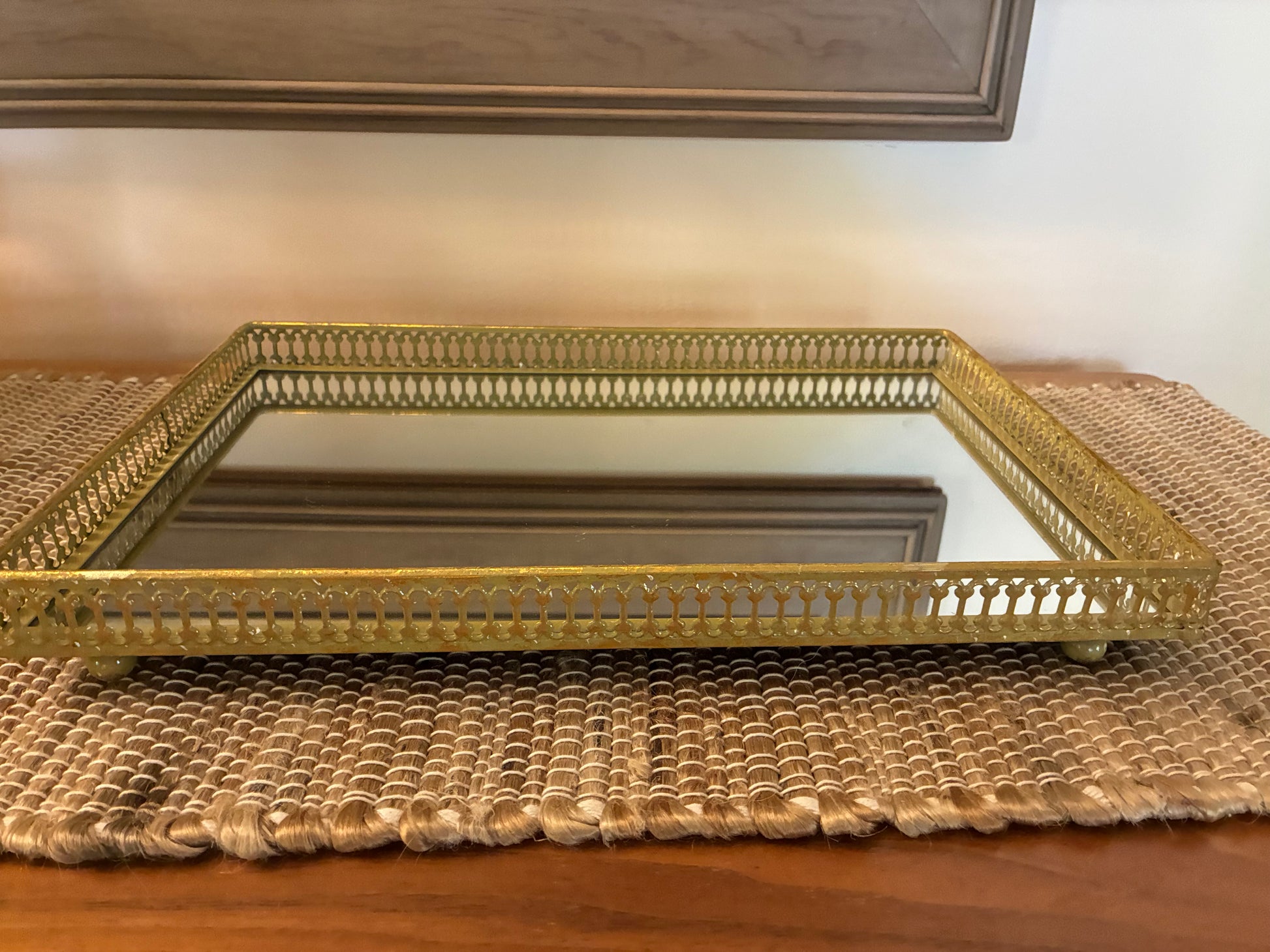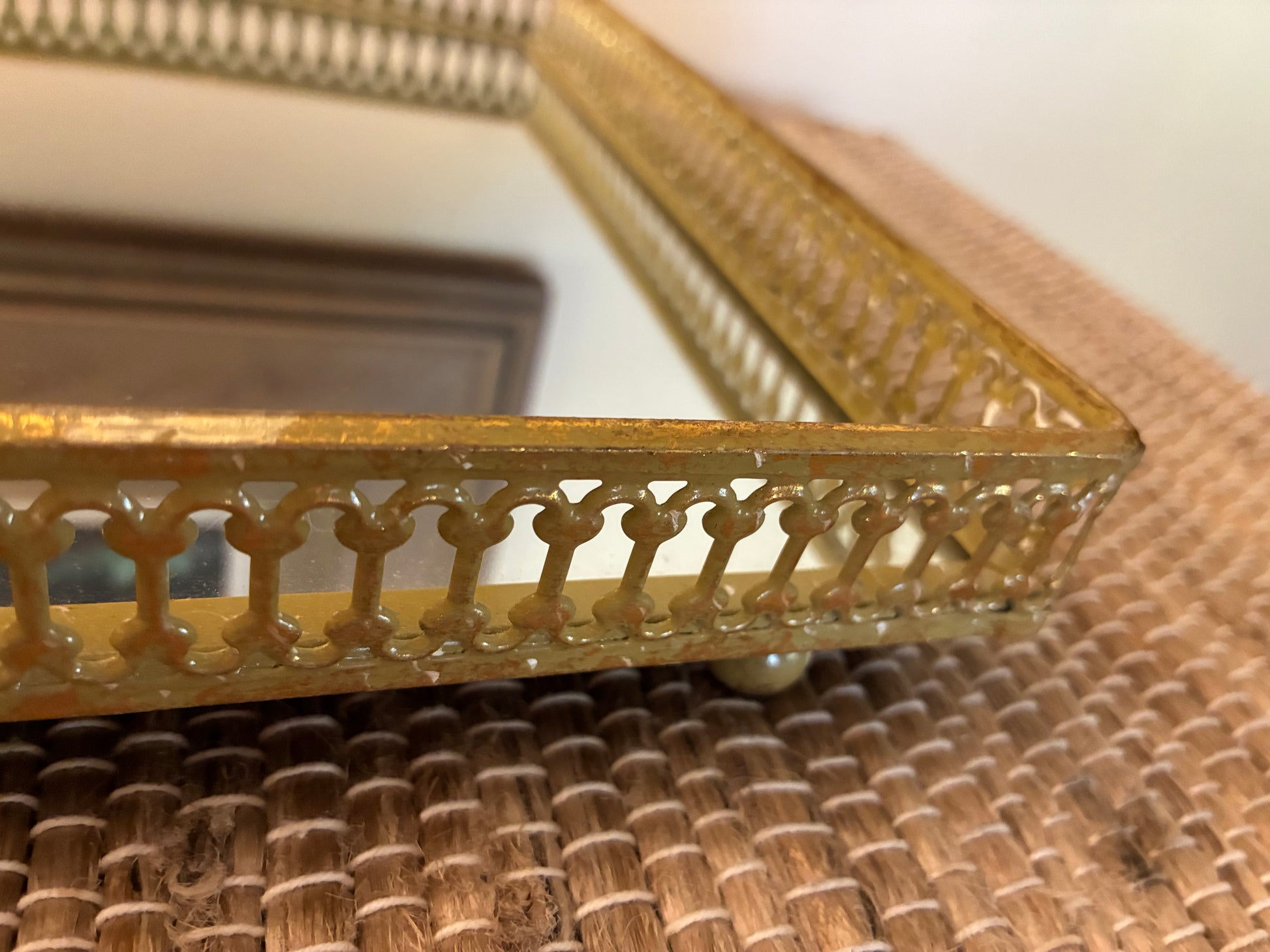 Gold metal filigreed mirror