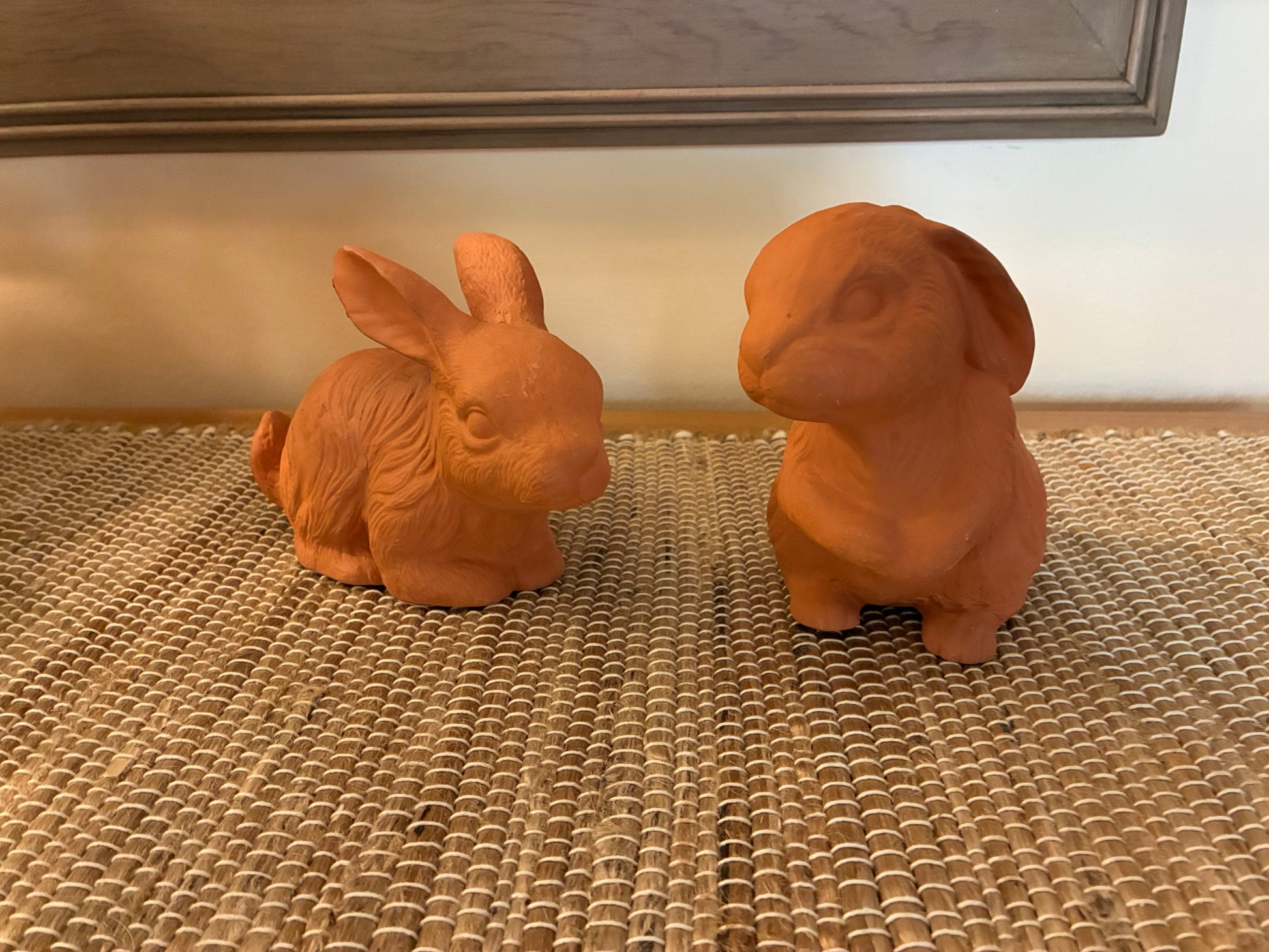 Add a touch of sophisticated cuteness to your home with our Terra Cotta bunny figurines. Perfect for both indoor and outdoor use, these 7" x 4 1/2" x 3 1/2" and 6" x 5 1/2" x 3 1/2" figurines make a charming addition to any decor. Expertly detailed, these bunnies are sure to delight any bunny lover.