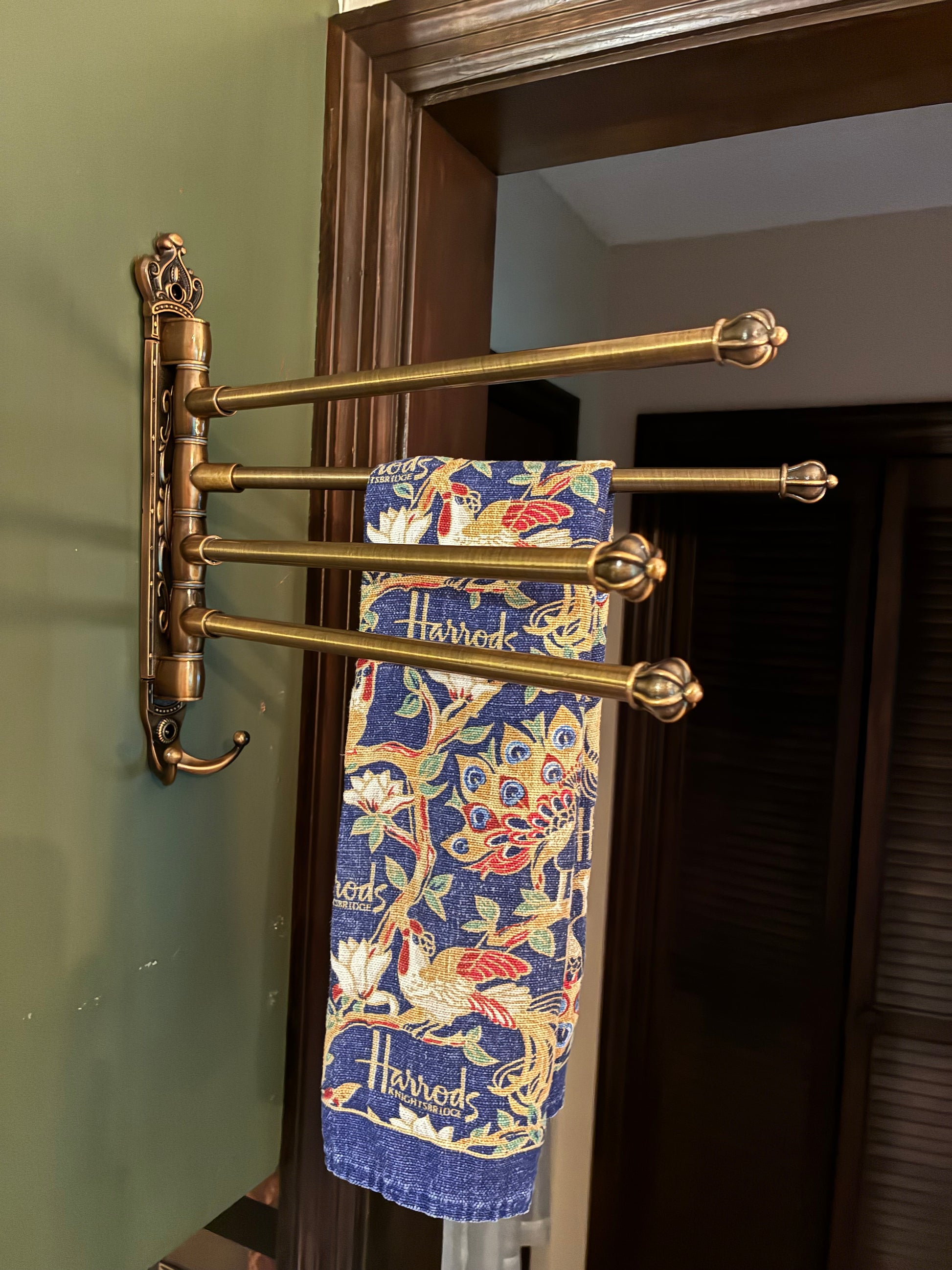 Vintage look for rod swivel towel rack in aged bronze lovely interesting peace for your kitchen and best towels this is 12" x 14"Add a touch of vintage charm to your kitchen with our aged bronze towel rack. The swivel rods allow for easy access to your towels, while the unique design adds a touch of interest to your space. Measuring 12" x 14", it's the perfect addition to your vintage kitchen.