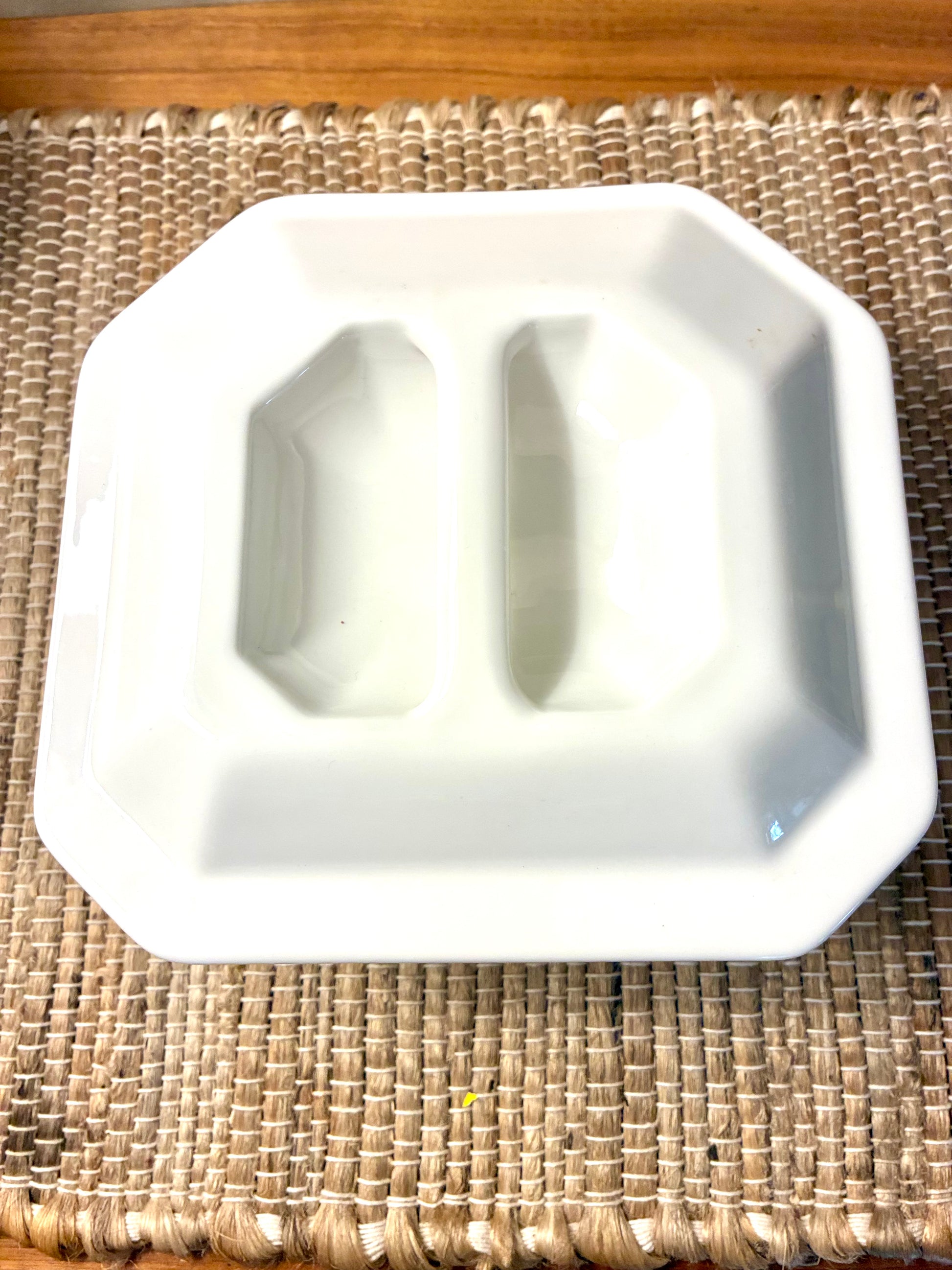 Although Vintage, this is a contemporary style squared Sopde serving dish with cover. Sleek & understated, this can easily pair with any table setting. Also perfect for food storage in a compact 7.5x7x3.5 size.