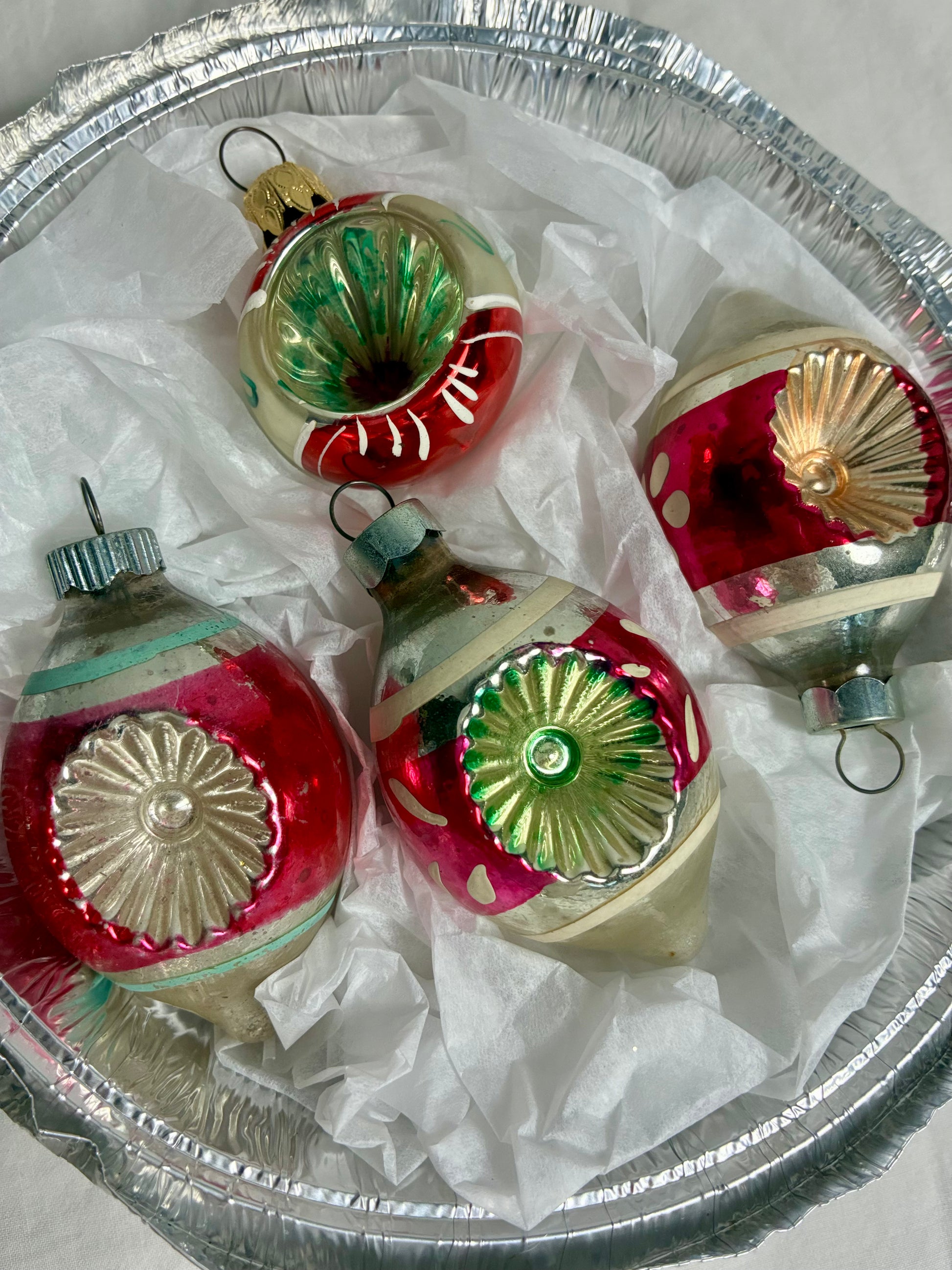 Add a touch of vintage charm to your holiday decor with this set of 4 handpainted ornaments. Featuring a stunning combination of pink, red, silver, and gold, these 4-inch ornaments are a must-have for any festive display.