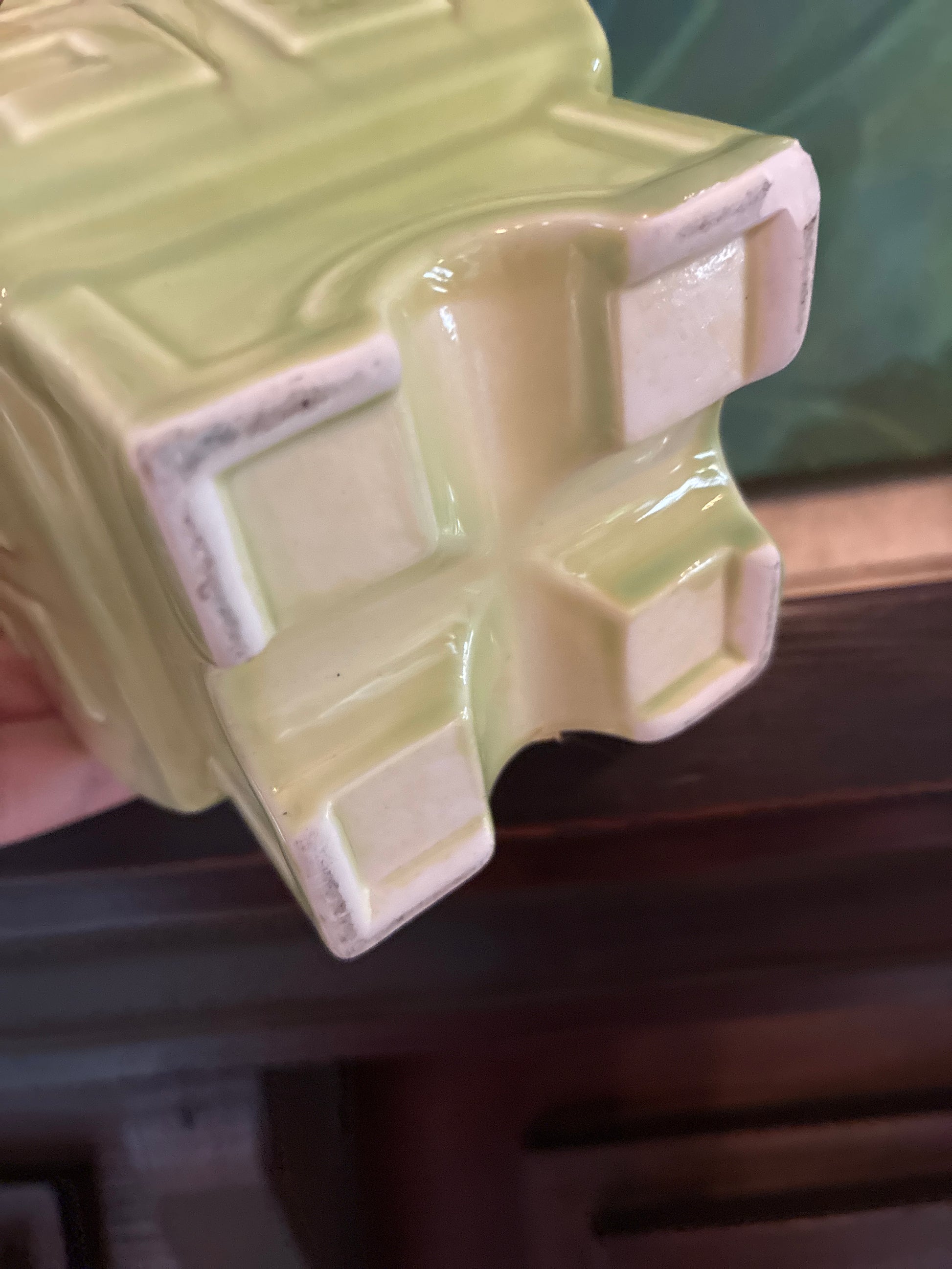 Add a touch of elegance and sophistication to your home decor with our Vintage MCM Roselane vase in pale chartreuse. This exquisite vase features a meandering Asian design, adding a artistic and luxurious touch to any room. Measuring at 10" x 5", it's the perfect statement piece for any space.