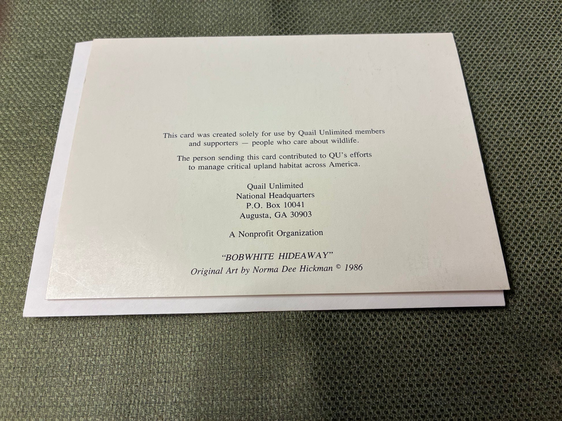 This vintage greeting card set features high-quality reproductions of beautiful quail and landscape scenes. Made with exquisite attention to detail and printed on durable card stock, these cards are perfect for all occasions, blank inside. Each set includes three unique designs that will add a touch of elegance to your correspondence.